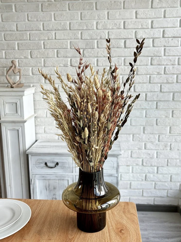 It’s made from natural plants and is composed of dried plants, which can be used for home decor, adds a natural atmosphere, and can also be used as a gift.